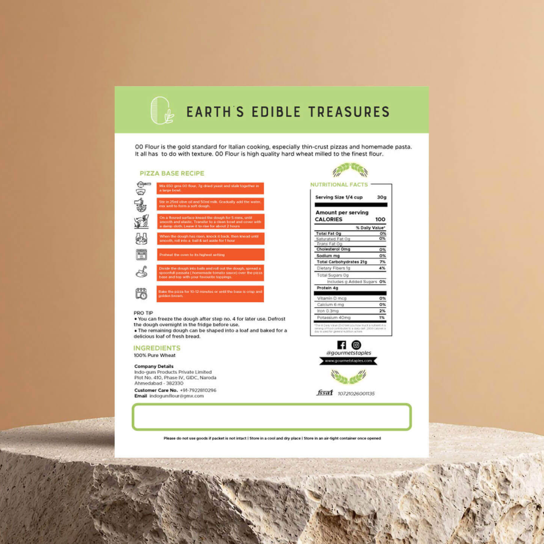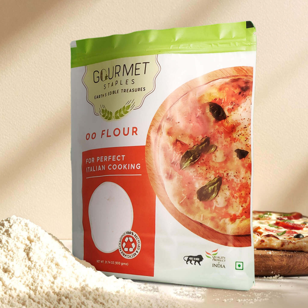 Our OO Flour is versatile, all set to offer you authentic pizza and exclusive homemade plates of pasta. If you want to enjoy the best pizza, your cooking journey must start with our Flour. Our flour is a standard product for Italian cooking, especially thin-crust pizzas and Neapolitan pizzas. So make a healthy choice and replace your regular maida with Gourmet Staples’ OO Flour. Must say, nothing compares to the delectable flavor of homemade pizza crust crafted with our flour.